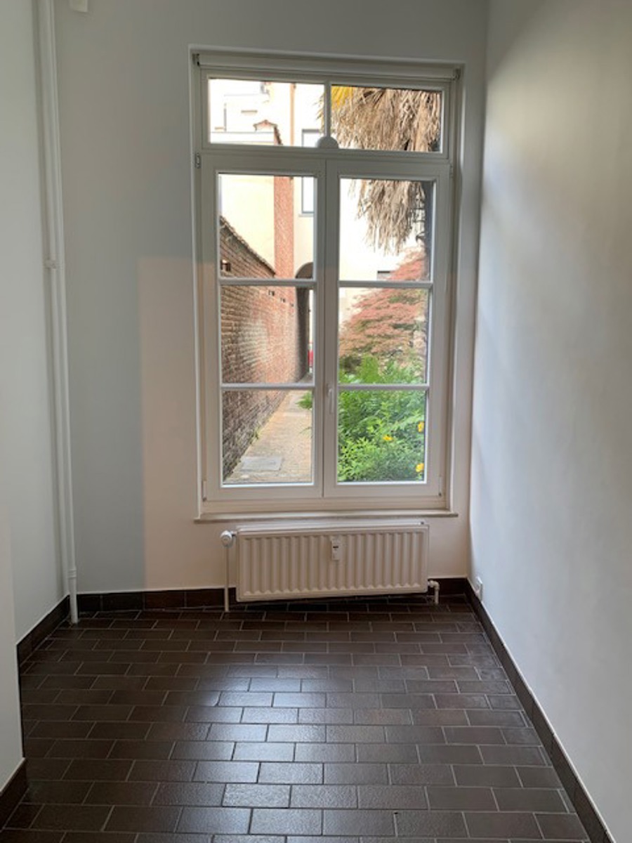 Between Place Fernand Cocq and Place Flagey. In an inner island, house of character completely renovated. 1 very large bedroom, 1 office/extra bedroom, bathroom with dressing room, spacious bright living room with cassette/FO, fully equipped kitchen with dining area, laundry room with washing machine, cellar/workshop, terrace. Blinds, curtains and light fixtures installed. Quiet and very bright. Charges 150€/month (maintenance common/garden + provision for water and heating of the apartment). Possibility of parking: 110€. PEB before roof work: D. Proximity to shops and public transport. A must see ! 0032.495.53.41.10