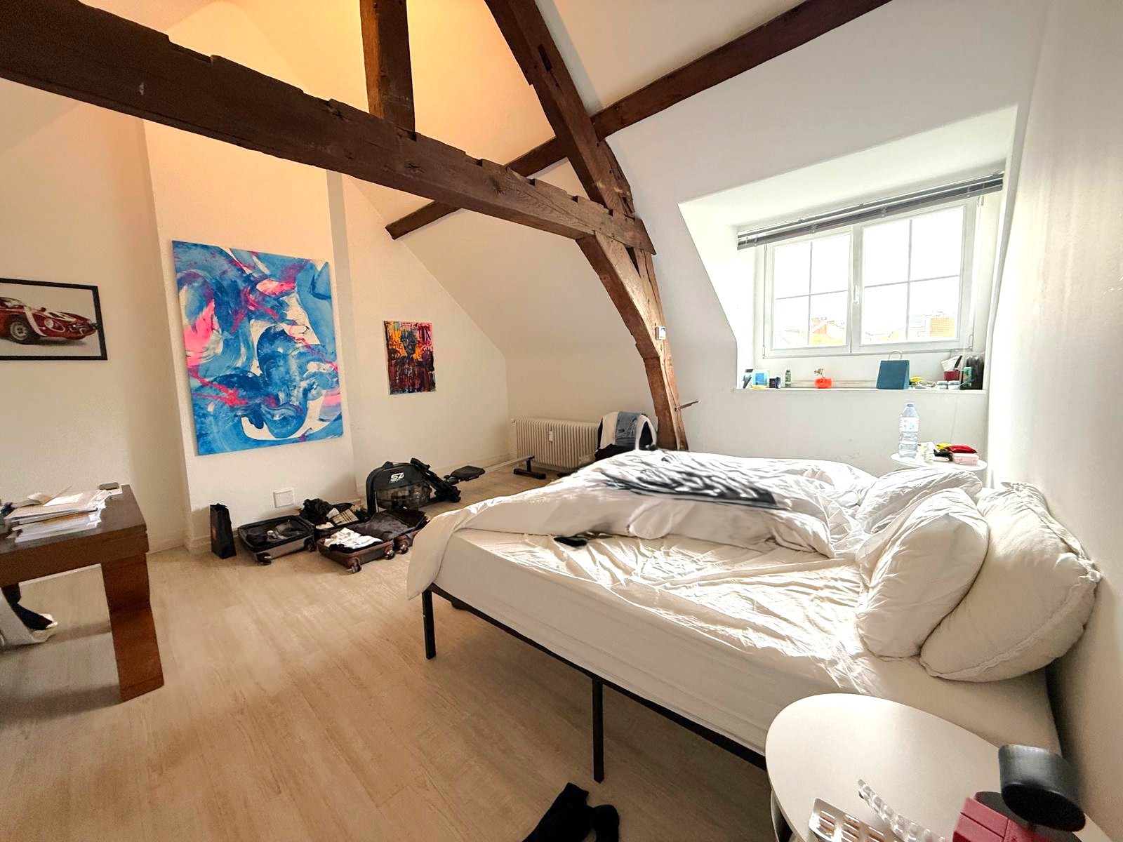 Place du Grand Sablon : Très bel appartment atypique et lumineux dans un immeuble de caractère. 2 chambres, grand living avec feu ouvert, cuisine équipée, salle de bains + buanderie, toilettes séparées. 3ème et dernier étage avec ascenseur. Charges : 250€/mois (Communs+provision pour le chauffage et l'eau de l'appartement + assurance abandon de recours). Bail société possible. Environnement calme et sécurisant, proximité directe transports en commun et commerces. A voir absolument ! 0032.495.53.41.10 de préférence via WhatsApp